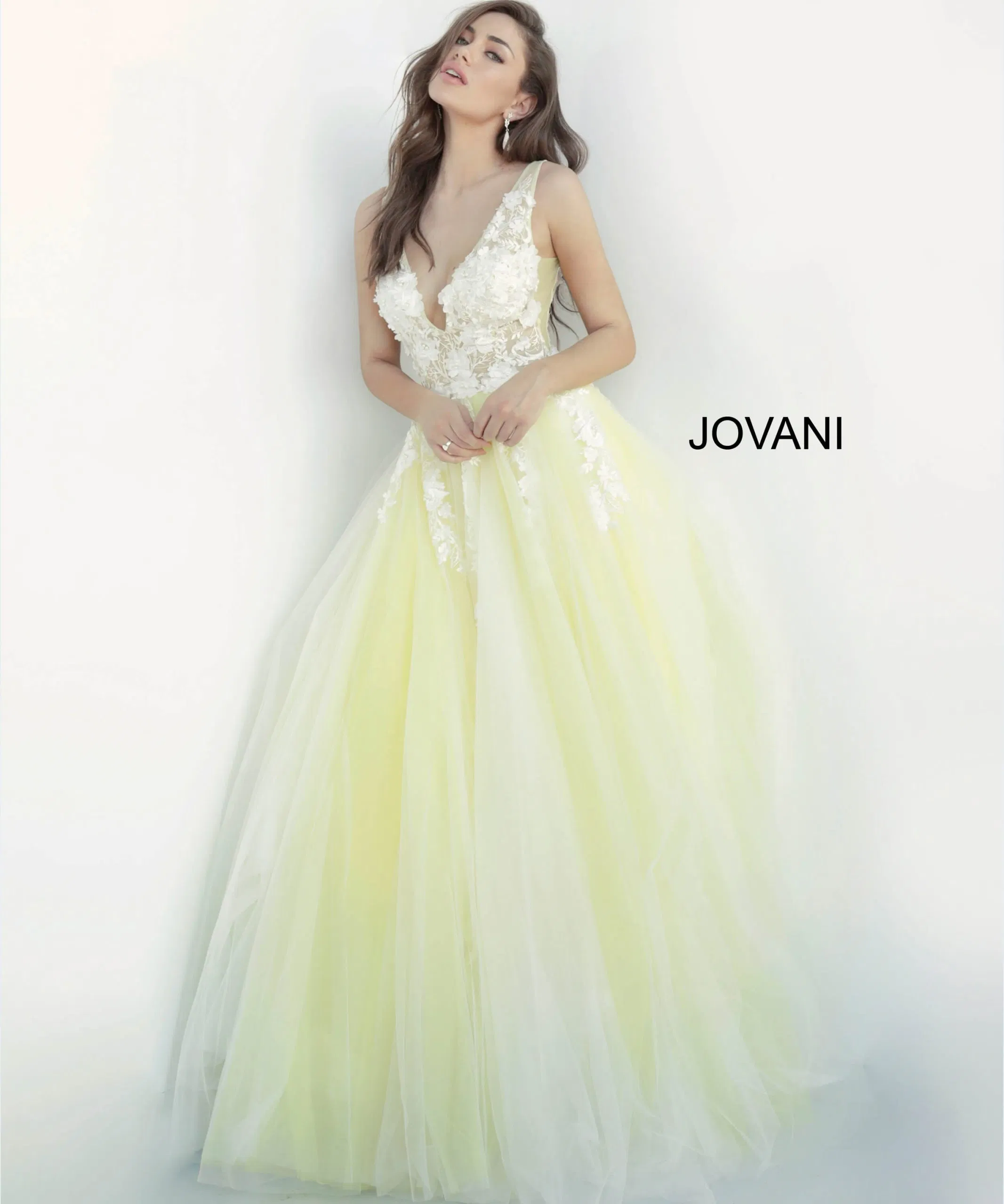 Floral Appliques V Neck Prom Ballgown Jovani 55634